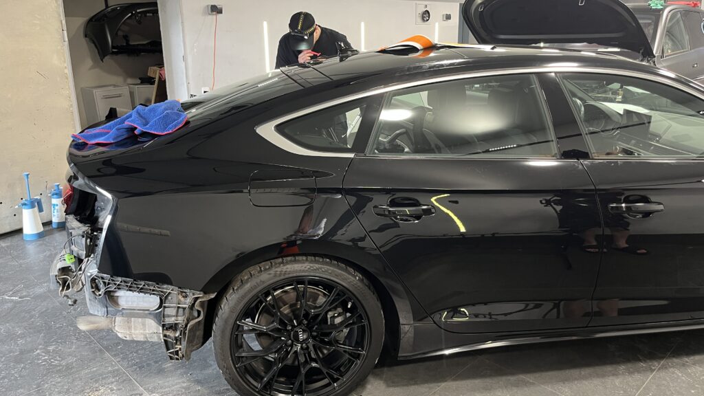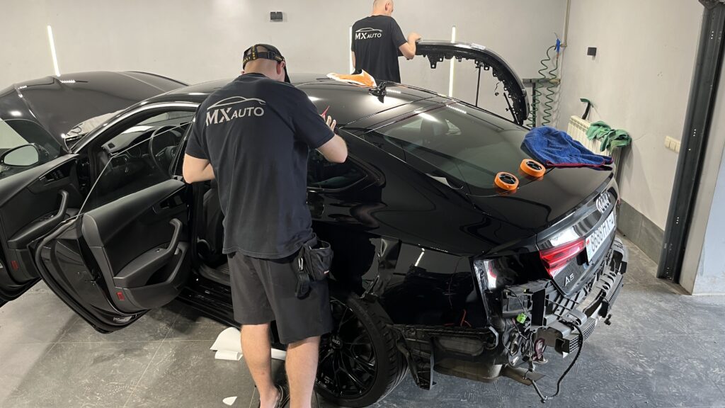 - Команда имеет опыт работы с премиальными автомобилями и знает особенности сложных панелей Audi А5, что минимизирует риск перегибов и пузырей.