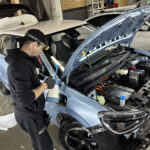 2. Автомобиль тщательно мойется и обезжиривается, чтобы обеспечить идеальную адгезию пленки. При необходимости выполняются мелкие ремонтные работы поверхности.
