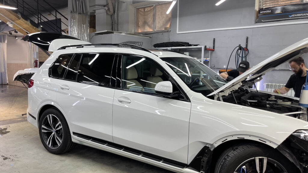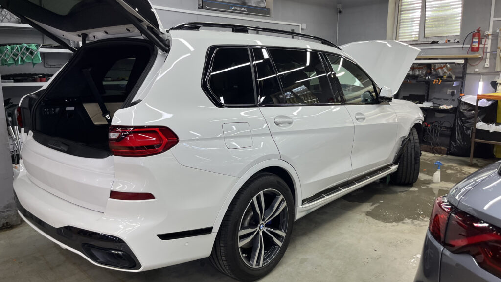 Кроме того, пленка служит барьером от ультрафиолетовых лучей, предотвращая выгорание и потускнение цвета. Это особенно актуально для ярких и эксклюзивных оттенков BMW X7, которые требуют особого ухода.