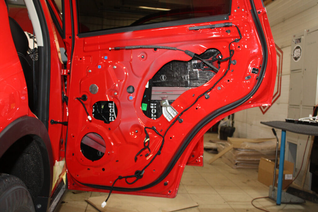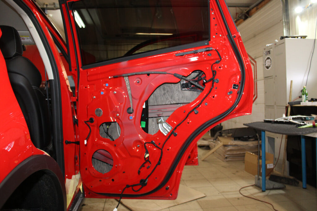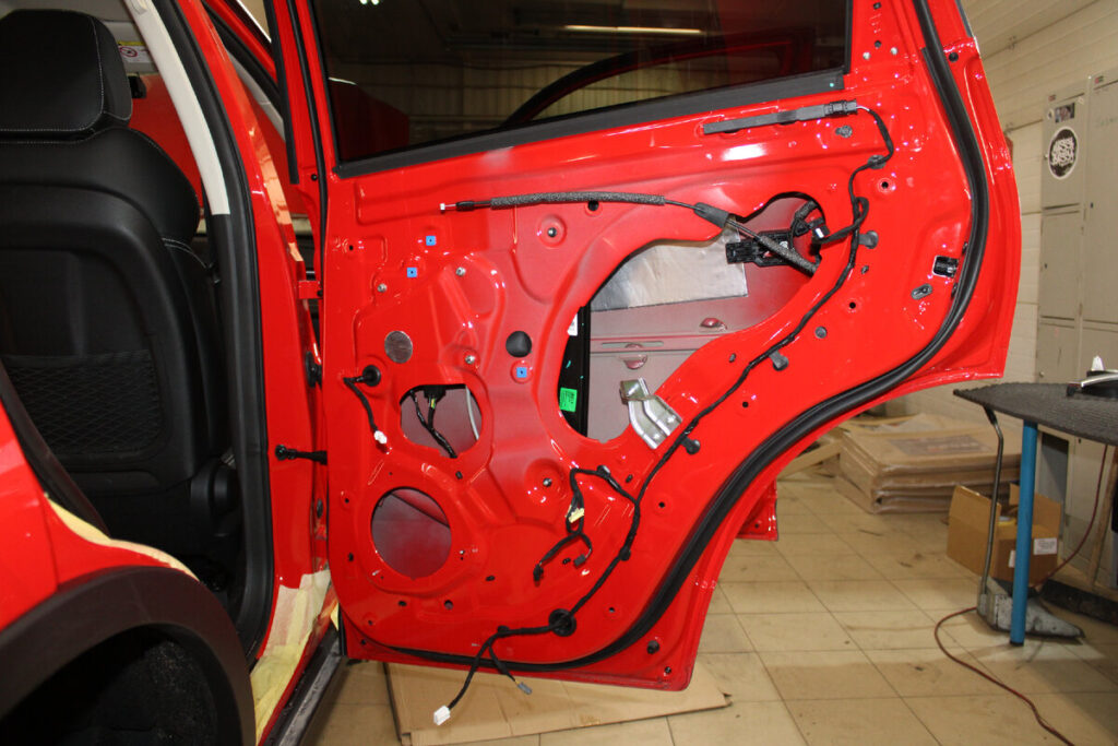1. Двери: Основные источники проникновения шума от дороги и ветра. Четырехслойная обработка дверей значительно снижает уровень шума и вибраций.